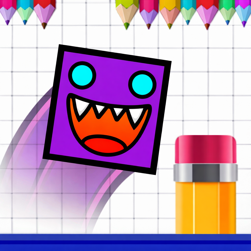 Geometry Jump Sketchy is a rhythm-based arcade skill game inspired by the core formula of Geometry Dash. Instead of neon lights and glowing effects, the game adopts a hand-drawn, notebook-style visual theme. The sketch-like presentation gives it a lighter and more playful identity. Despite the visual change, the gameplay remains strictly precision-focused.